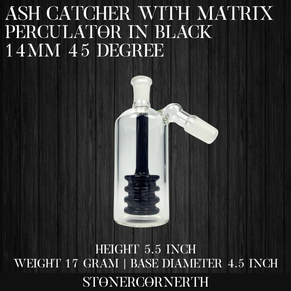 Ash Catcher With Matrix Perculator In Black 14mm 45 Degree