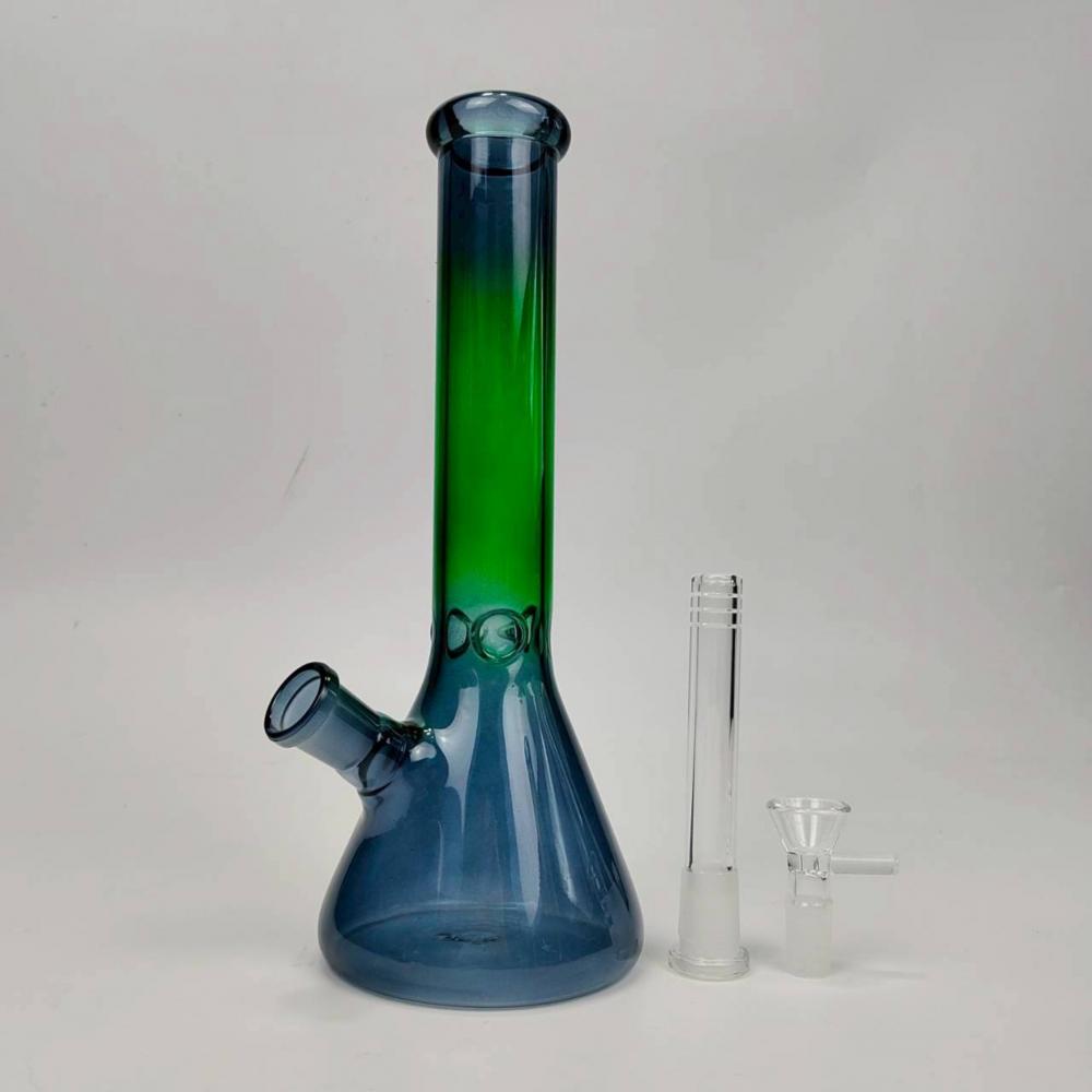 This The Hulk 2-Tone beaker-style glass bong features a bold, dual-color design that delivers a powerful, edgy look with a premium feel. The wide beaker base provides excellent stability, making it easy to use and suitable for both beginners and collectors. Crafted with 5 mm thick glass, it offers strength, durability, and a comfortable grip.