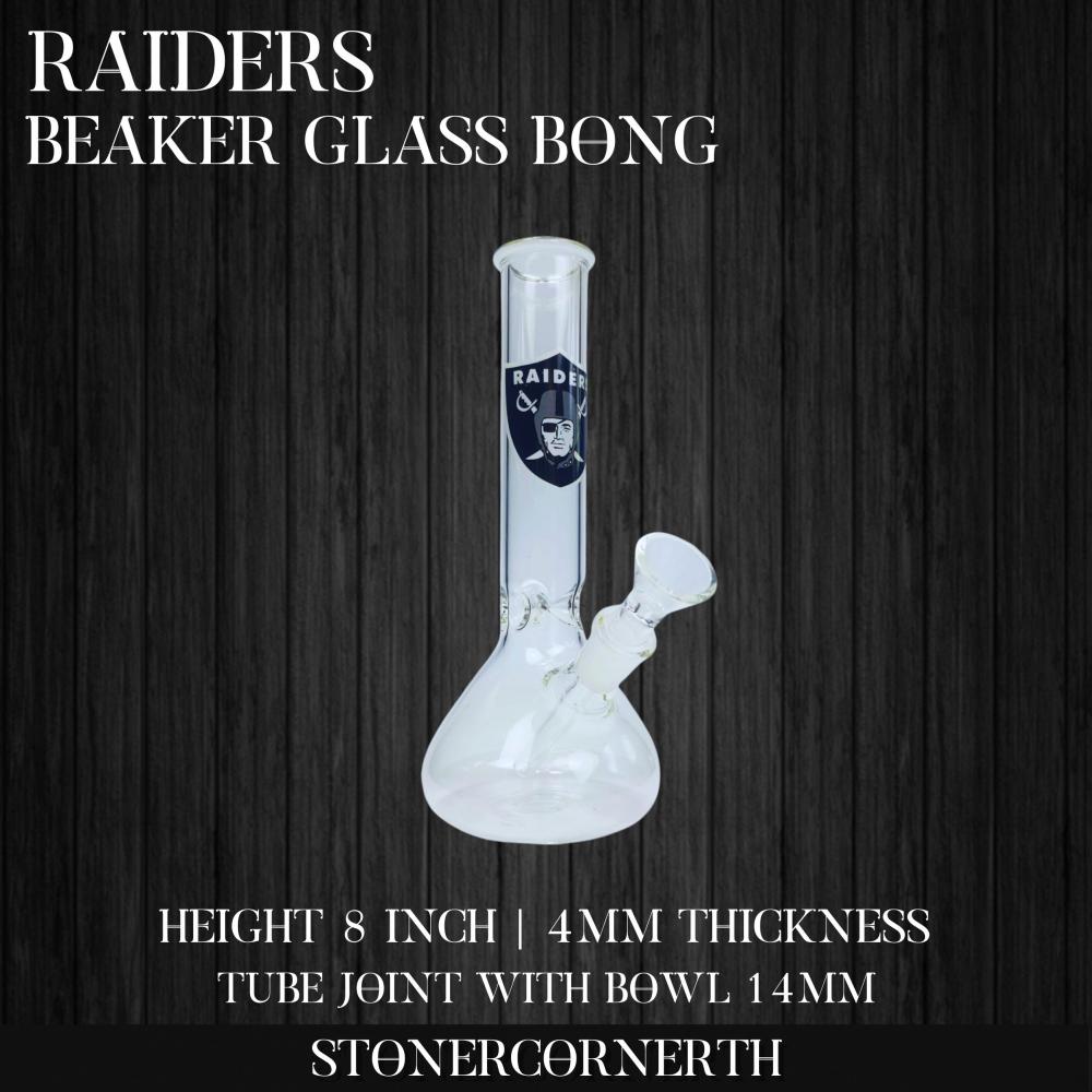 Raiders Beaker Glass Bong 8 inch 4mm Thickness