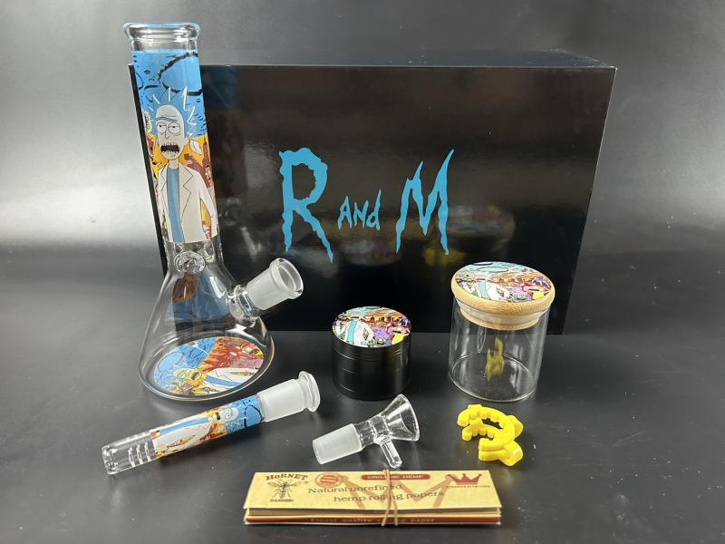 Glass Bong Set Comes with Herb Grinder, Glass Herb Jar, Locking Clip, King-Sized Roll Paper and Beautiful Storage Box