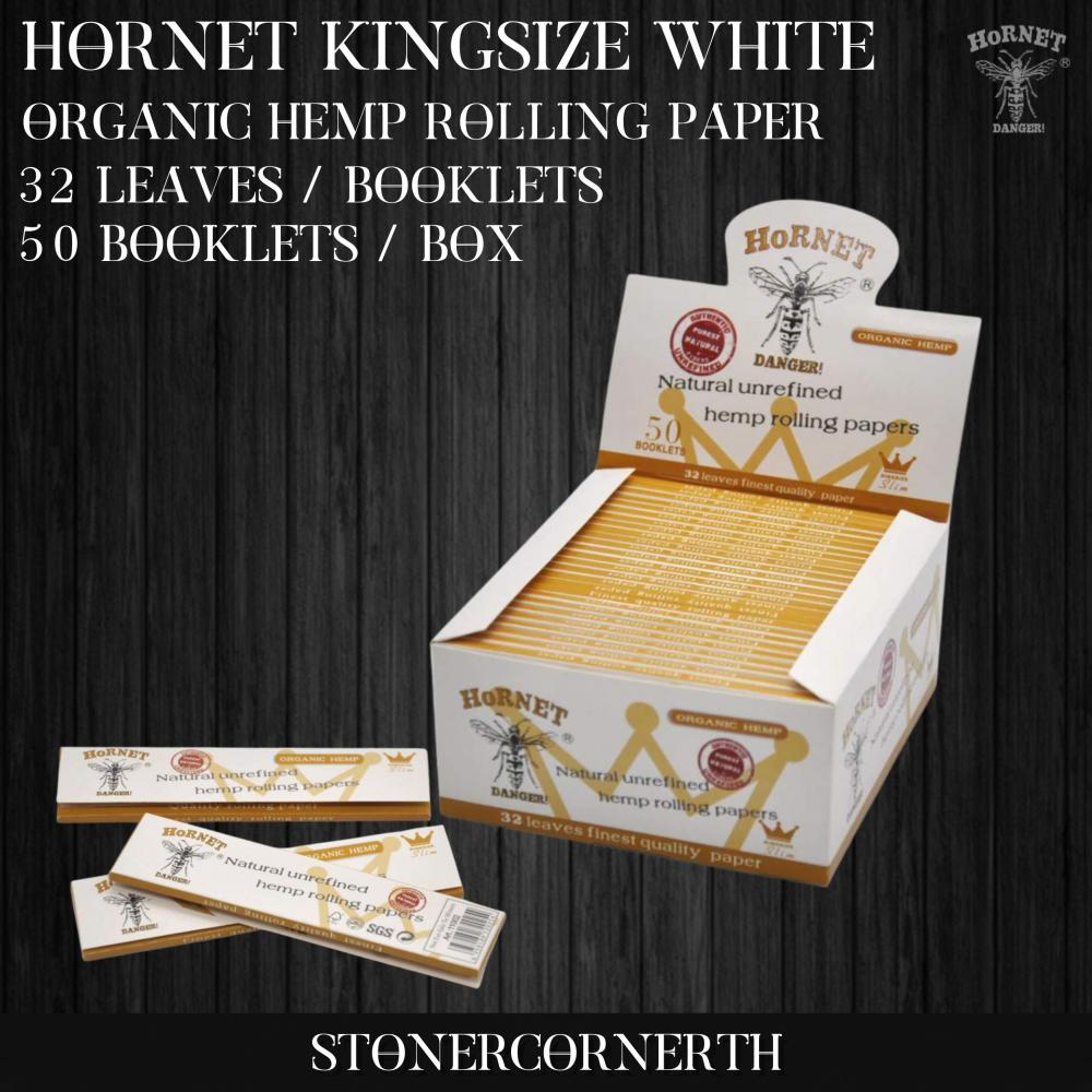 Kingsize rolling papers from HORNET, crafted from high-quality 100% organic hemp and safely bleached for a clean, refined look. These papers are easy to roll, slow-burning, and provide a smooth smoke with a clean, natural taste. A perfect choice for those who want the benefits of natural materials with the sleek appearance of white paper.