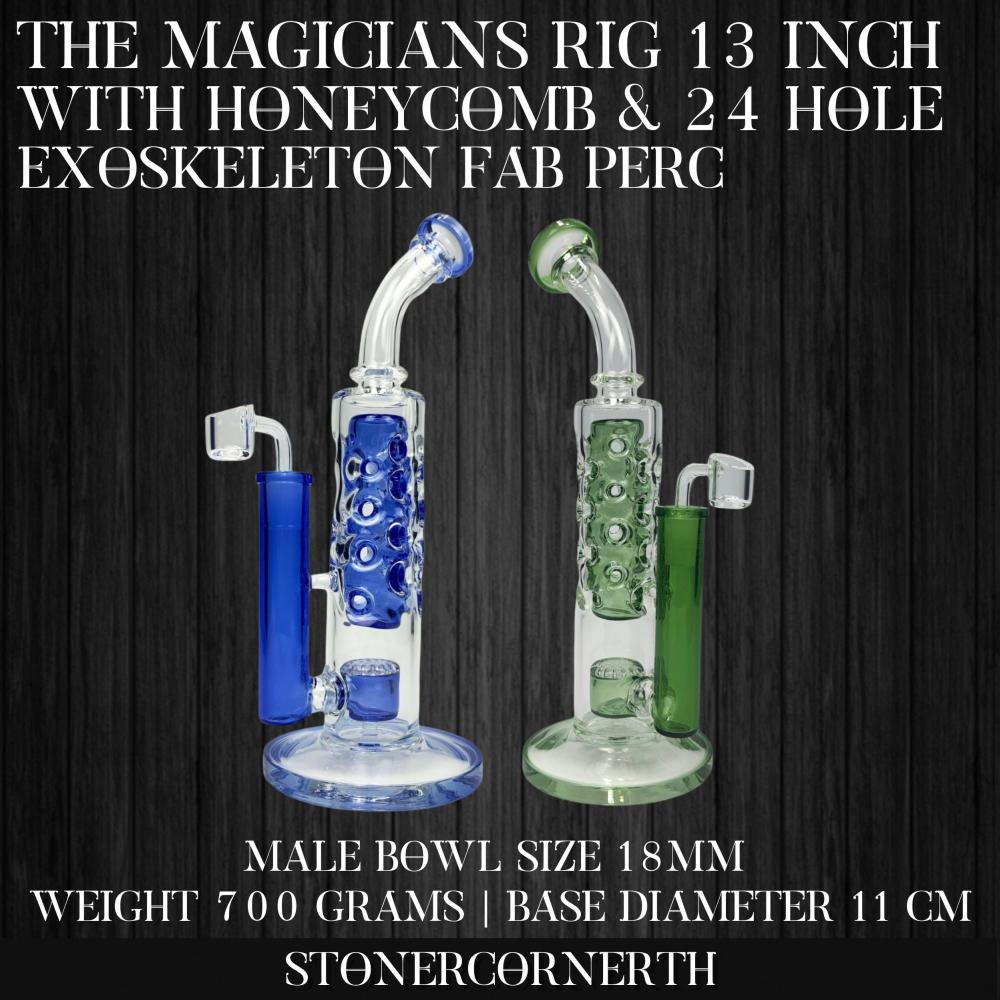 Experience a new level of smoothness with The Magicians Rig 13-Inch, featuring a premium dual filtration system — Honeycomb Perc and 24-Hole Exoskeleton Fab Perc. This combination creates superior smoke circulation and diffusion, delivering exceptionally smooth, refined, and flavorful hits every time.