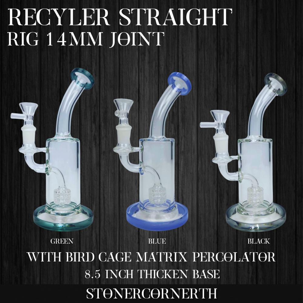 Recyler Straight Rig 14mm Joint with bird cage matrix percolator 8.5 Inch Thicken Base