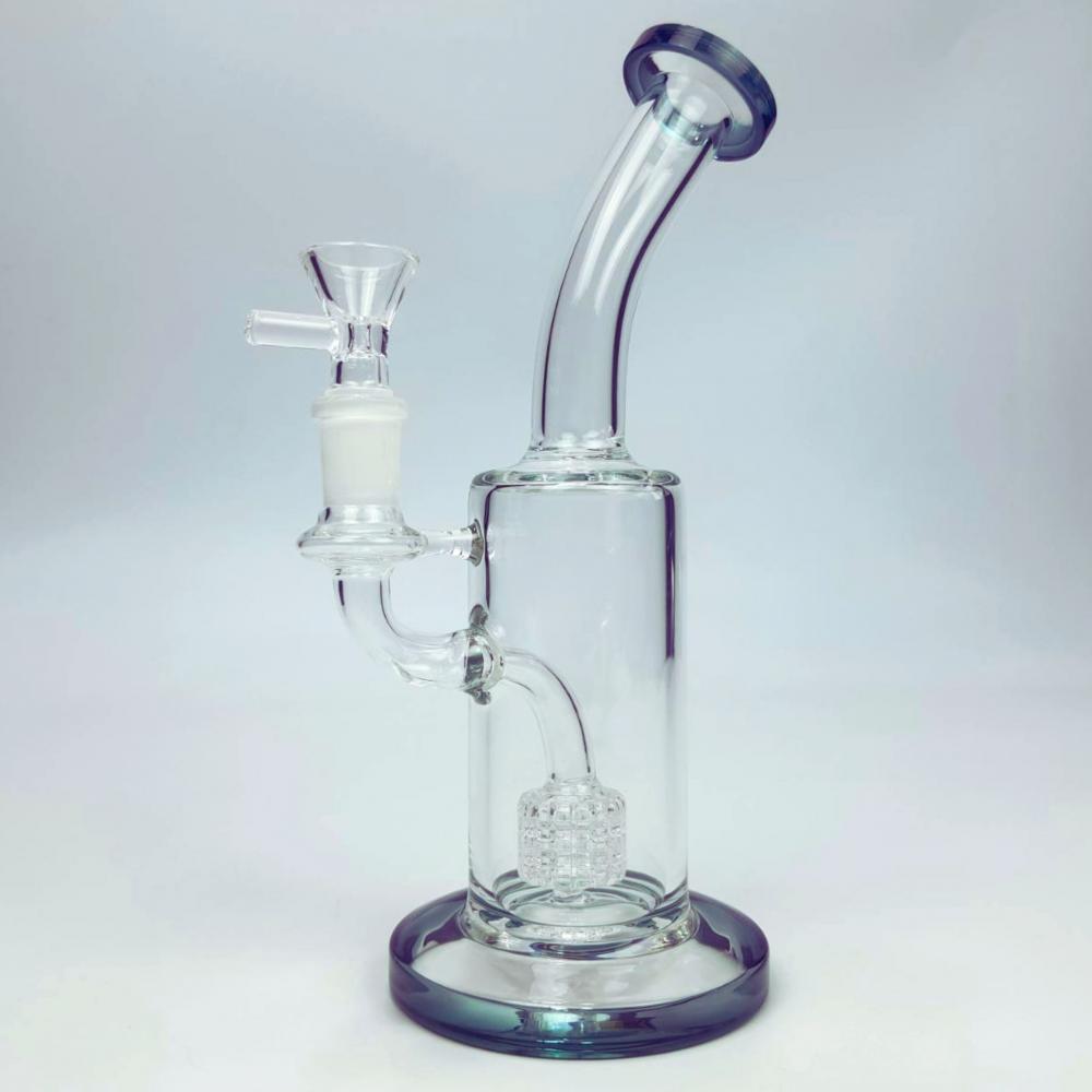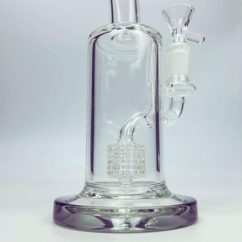 This 8.5-inch straight Recycler glass rig is compact in size but packed with performance. The Recycler system continuously circulates water while you inhale, helping make each pull smoother, cooler, and more consistent. It also features a built-in Bird Cage Matrix Percolator that creates fine bubbles for stronger filtration reducing heat and harshness for a softer, cleaner hit. Finished with a thickened base for extra stability and durability, so it sits securely and feels solid in use.