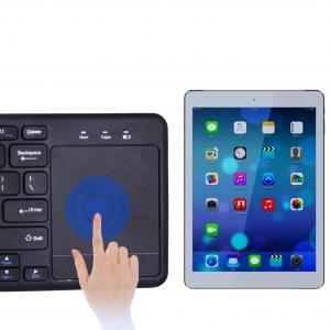 This ultra-slim wireless keyboard comes with a built-in touchpad, allowing you to control everything in one device without the need for an additional mouse. It is compatible with Windows PC, Laptop, iOS (iPad), Android, and Mac OS.