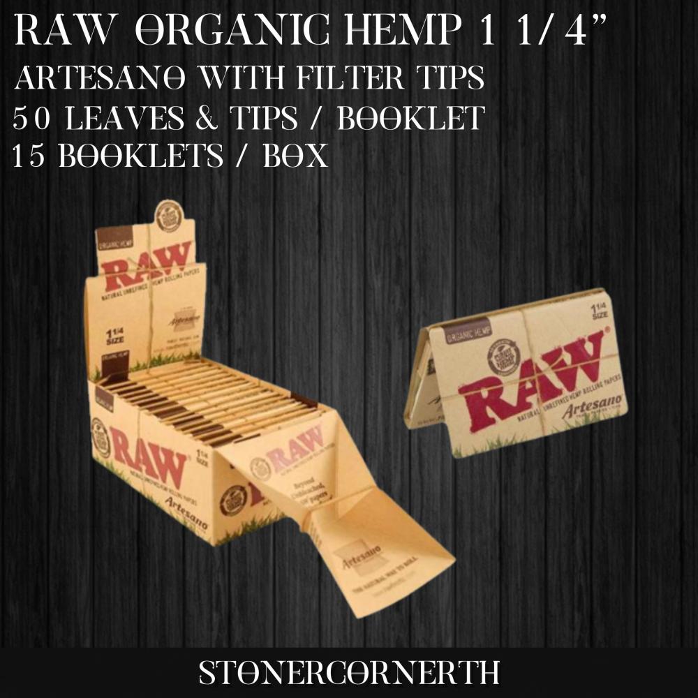 RAW ORGANIC HEMP 1 1/4" ARTESANO WITH FILTER TIPS | 50 แผ่น + ก้นกรอง / เล่ม - 15 เล่ม / กล่อง
