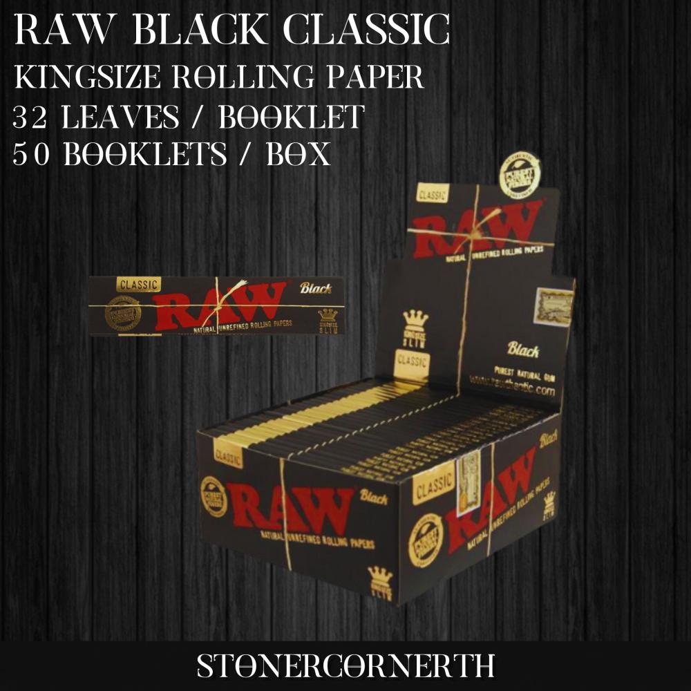 RAW BLACK CLASSIC กระดาษมวน ขนาด Kingsize | 32 แผ่น / เล่ม - 50 เล่ม / กล่อง