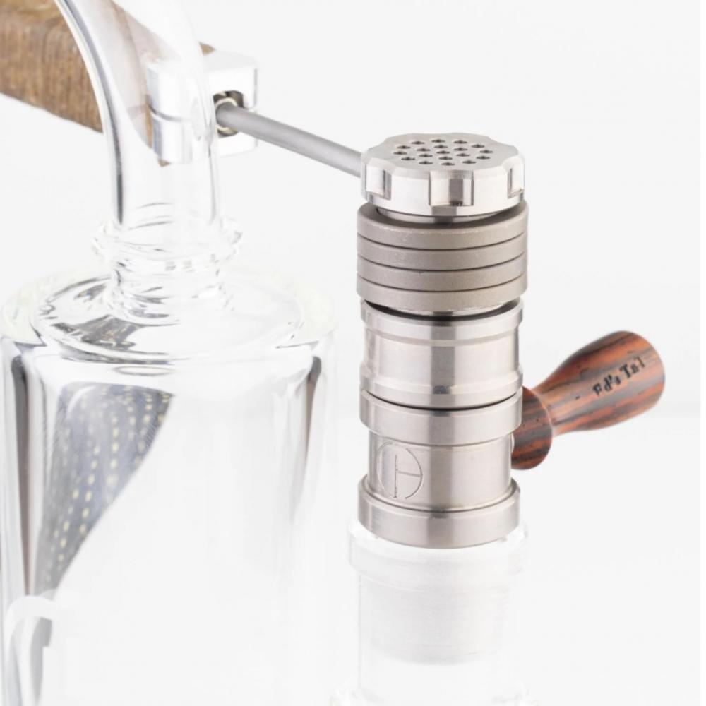 The new Flowerpot F22 head is created at a time where ball vapes require some refinement. This new flowerpot head packs a punch as the heat sink is improved by the addition of a solid titanium machined cap and a machined screen at the bottom which further improves the conduction and retention of heat throughout the device.