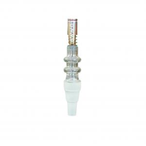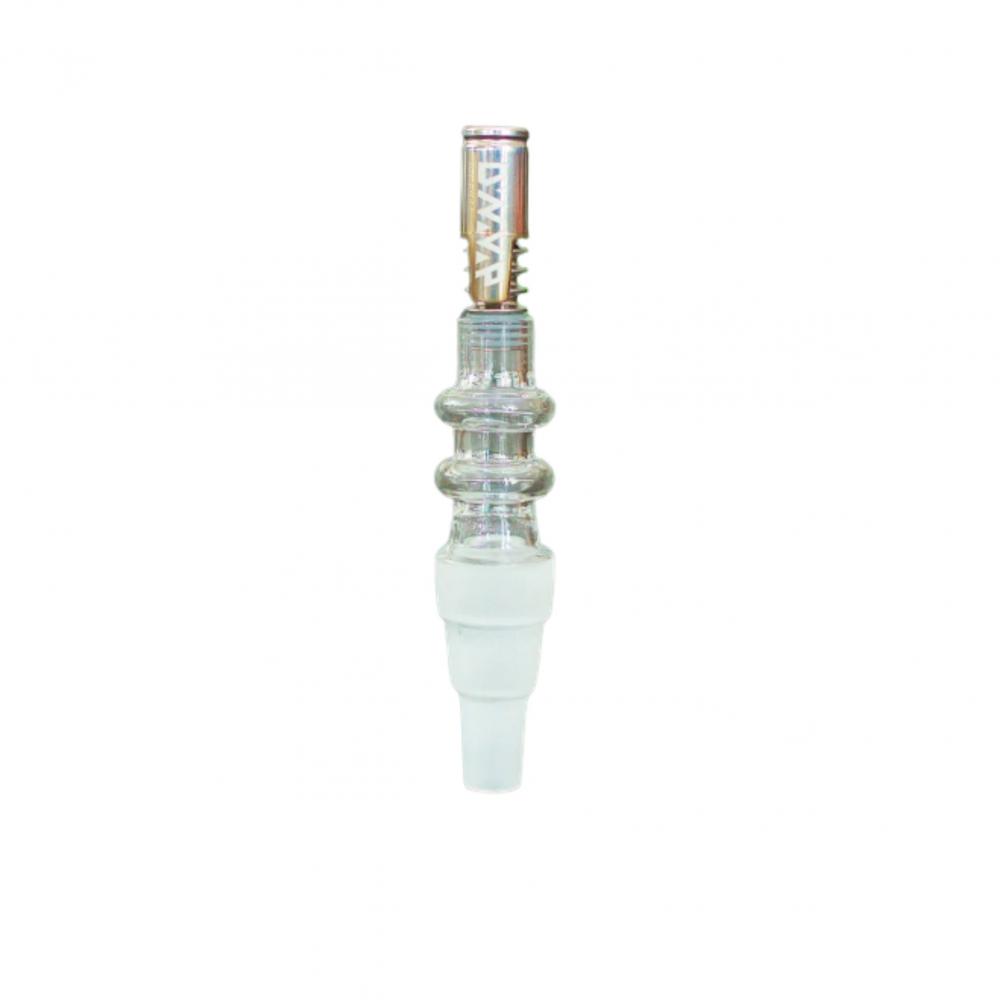 The LittleFinger Adapter is the easiest, cleanest, and most convenient way to use any DynaVap tip with a waterpiece. With its universal 10, 14, or 18mm male joint, the LittleFinger truly does adapt to whatever your needs are. Two wide glass bands provide extra durability while also allowing you to set the unit down when it′s hot, as it holds the tip suspended in the air rather than laying it on the table. Plus, it′s enjoyable to watch the vapor travel through the glass.