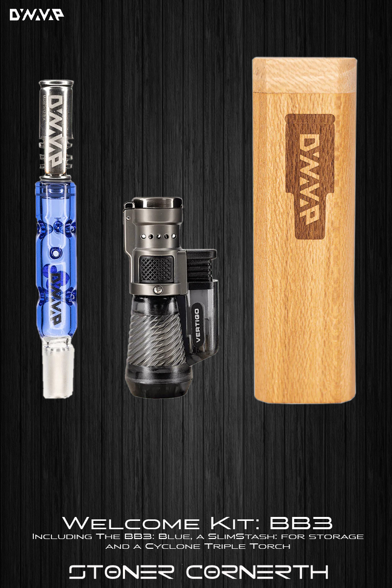 The DynaVap Welcome Kit comes with everything you need to jump feet first into the world of DynaVap. It comes with a BB3 glass stem, a SlimStash travel container, and a Cyclone Triple Torch Lighter for one affordable price.