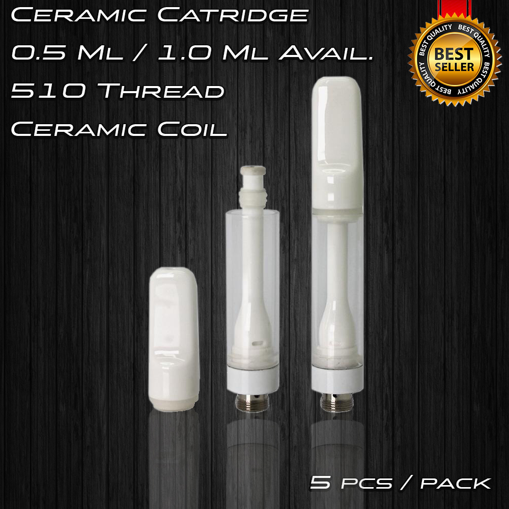 [5 pieces / set] FULL CERAMIC Cartridges White 0.5ML or 1.0Ml No Leak - Thick Oil Ceramic Atmoizer 510 Thread Vape Carts Ceramic